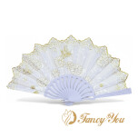 ABANICO BLANCO C/RELIEVES DORADOS X1 AL AZAR