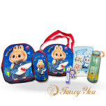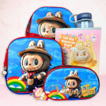 Botella 600ml, llavero labubu, libro p/colorear A4, mochila infantil 12" 3 piezas
