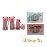 Set labial lodo efecto terciopelo 3pcs c/llavero osito x1 al azar