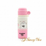 Termo de acero 490ml c/doble pico + doble vaso y llavero scribbled puppy x1 al azar